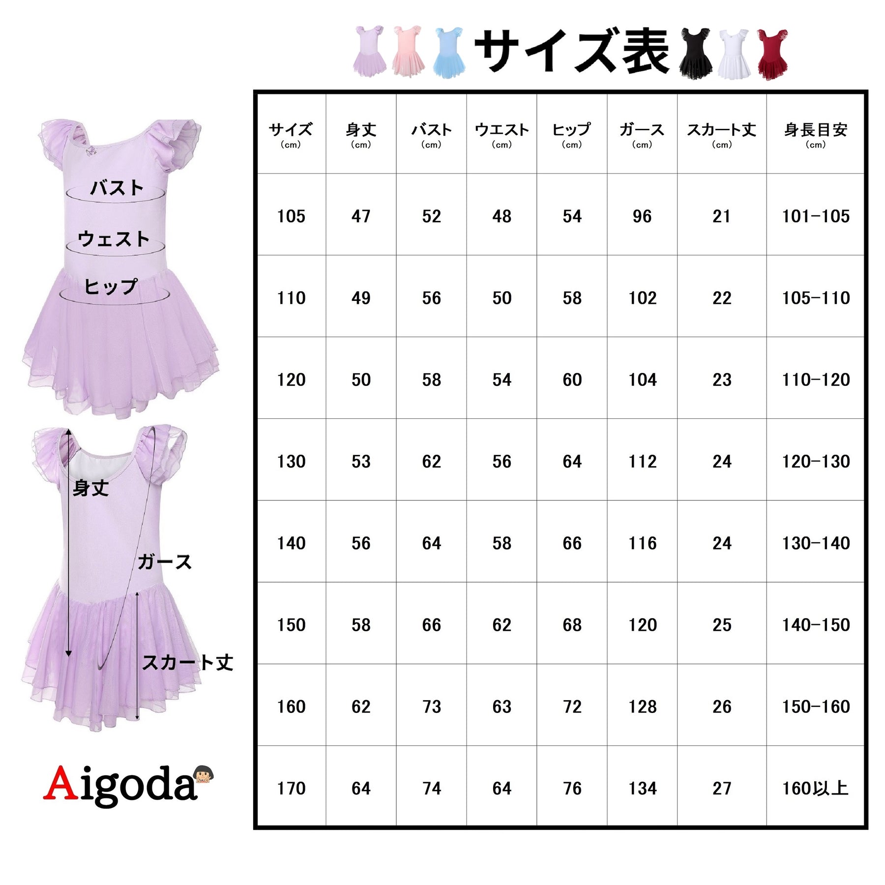 【Aigoda】バレエ レオタード 子供 可愛い 5色 シフォンスカート付き 新体操 キッズ ジュニア 大人 練習着 発表会